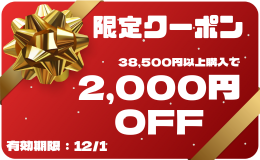 | 2000円OFF クーポン | 12/1 23:59 | 38500円以上で 利用可能(合算可) |