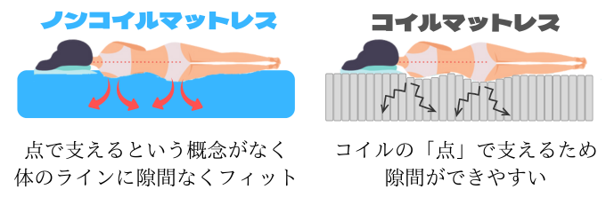 特にノンコイルマットレスであるエアウィーヴは体の凹凸に隙間なくフィット。