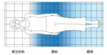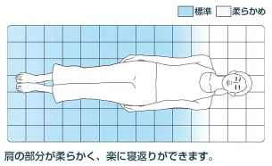 ゾーニングとは場所ごとに硬さを変えた配置のこと。エアウィーヴの硬さは3段階に分かれます。