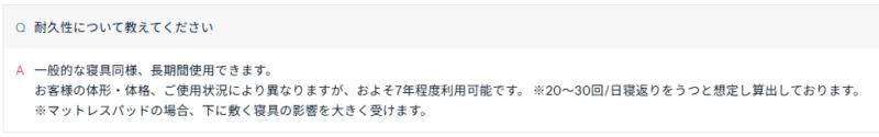 使用者の体格や頻度使い方にもよりますが、エアウィーヴの平均的な耐久年数は約7年とされています。