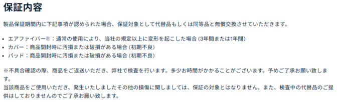 エアウィーヴの保証や長持ちさせる方法は以下の記事で詳しく解説しています。