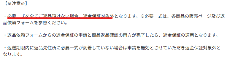 ⑤ 返品は“すべて揃っていること”が条件