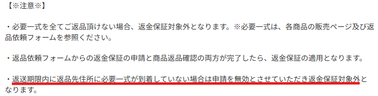 上記の相性を踏まえ、万が一の返品保証の注意点も理解しておけば完璧です。