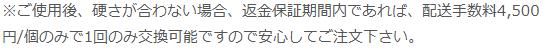 万が一選んだ硬さが合わなかった場合、返金保証期間内であれば、「配送手数料4,500円/個」負担で1回のみ交換が可能です。