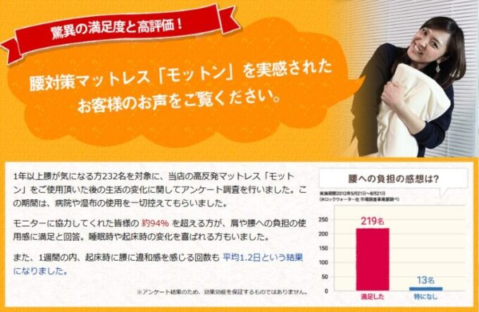 腰への評判がいい高反発マットレス「モットン」
