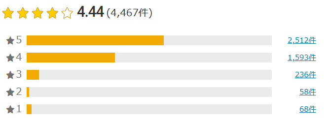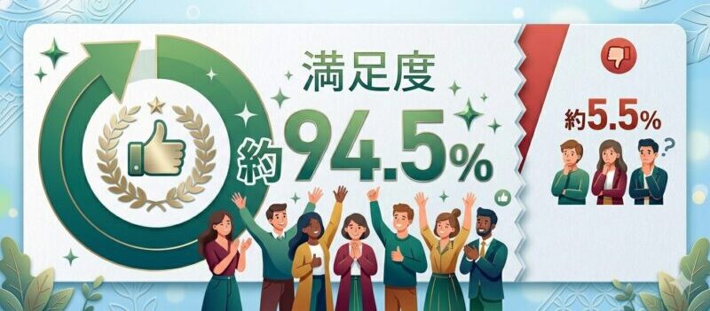 具体的に満足している人と残念だったと感じている人の割合を、先の楽天市場のレビュー割合(2026年4/1時点)から算出しました。