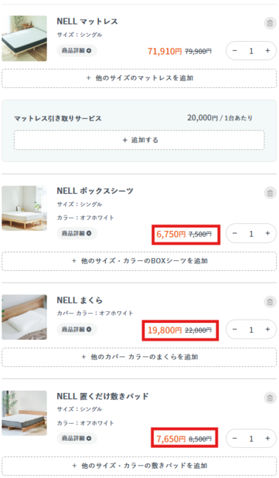 同時購入でNELL専用寝具も割引