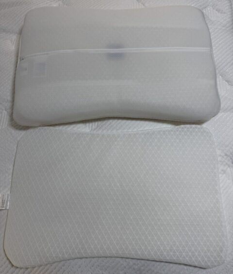 体の沈み込みに対し枕が高いため、仰向け・横向きどちらもしっくりきませんでした。