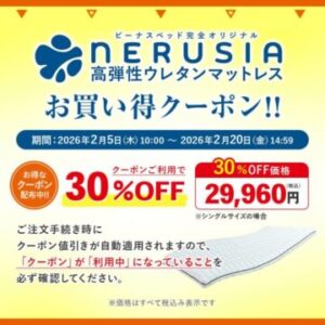 ネルシアマットレスはセールも頻繁に行われるので、タイミング次第ではかなりお得に購入することができるおすすめマットレスです。