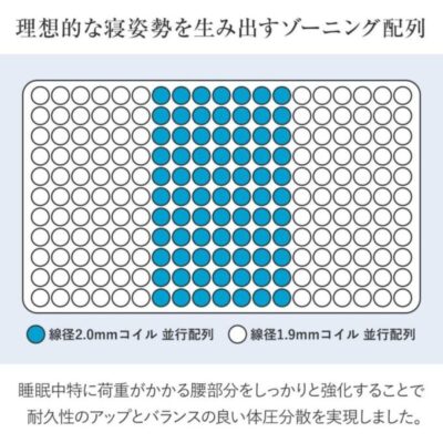 腰部強化マットレスとはマットレス中央部が他部分より硬めに作られた腰のサポート力を強化したマットレス。