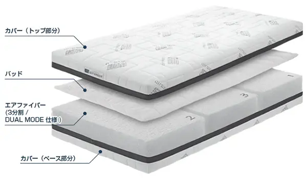 同じエアファイバーを採用し通気性や3分割の機能性はそのままに、厚さを抑え硬さを「標準」のみに限定することで価格を半額以下に抑えたスタンダードモデルです。