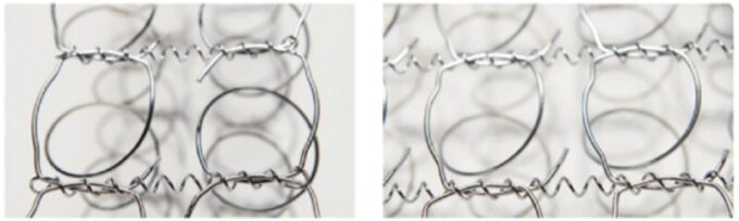 コイル同士が連結されており、引っ張り合って重さを分散し、高い通気性と硬めで張りのある寝心地が特徴のコイル構造です。